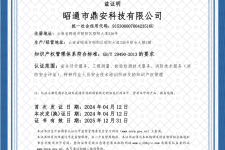 2003年11月10日,昭通市鼎安科技有限公司成立,初始主要從事第三方安全工程技術服務,經多年運營,發(fā)展為多專業(yè)綜合科技平臺,為社會提供多種專業(yè)技術服務工作。 現(xiàn)公司注冊資金為1200萬元,公司法定代表人:毛衛(wèi)旭。公司主要業(yè)務:安全評價、安全標準化評審、安全工程技術服務;環(huán)境監(jiān)測、職業(yè)衛(wèi)生檢測、檢驗;法律訴訟及非訴訟服務;司法鑒定、固定資產投資項目節(jié)能服務;工程咨詢;工程測量測繪;安全教育培訓等。是安全生產服務、安全教育培訓機構,也是環(huán)境監(jiān)測和職業(yè)衛(wèi)生服務機構,同時也是綜合的檢測檢驗、綜合科技平臺服務機構。多年來為公、檢、法、司、軍、警、海關、仲裁、安監(jiān)、工礦商貿企業(yè)、社會團體及個人提供多專業(yè)技術服務。